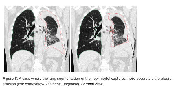 Cet accompagnement est toujours en cours. Nous aurons un technicien de l’application qui viendra la semaine prochaine pour rencontrer nos équipes. Il pourra également revenir si les médecins en ressentent le besoin. Maintenant, en ce qui concerne contextflow, le gros avantage est qu’ils ne se limitent pas à la détection et au suivi des nodules dans le temps, ce qui est essentiel et très important pour le dépistage du cancer du poumon, par exemple, et le suivi des fumeurs. Mais, au contraire, il permet aussi d’analyser d’autres pathologies, notamment l’emphysème, ce qui est une quantification primordiale, surtout dans une perspective d’avenir.